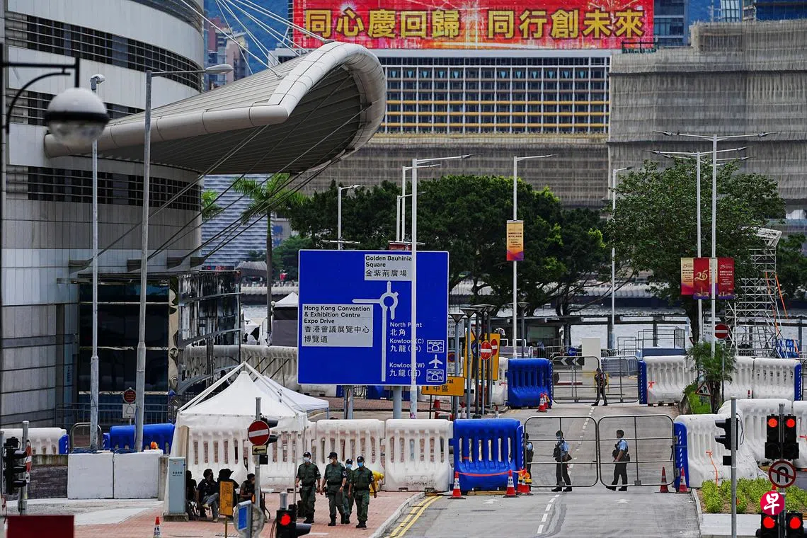 会展中心附近一带在29日已封路及采取特别交通安排,现场有多辆警车戒备,也有警员巡逻。湾仔会展及两家酒店附近道路29日起逐步封闭,入住酒店者的车辆需按指定路线驶入封闭范围内的酒店。