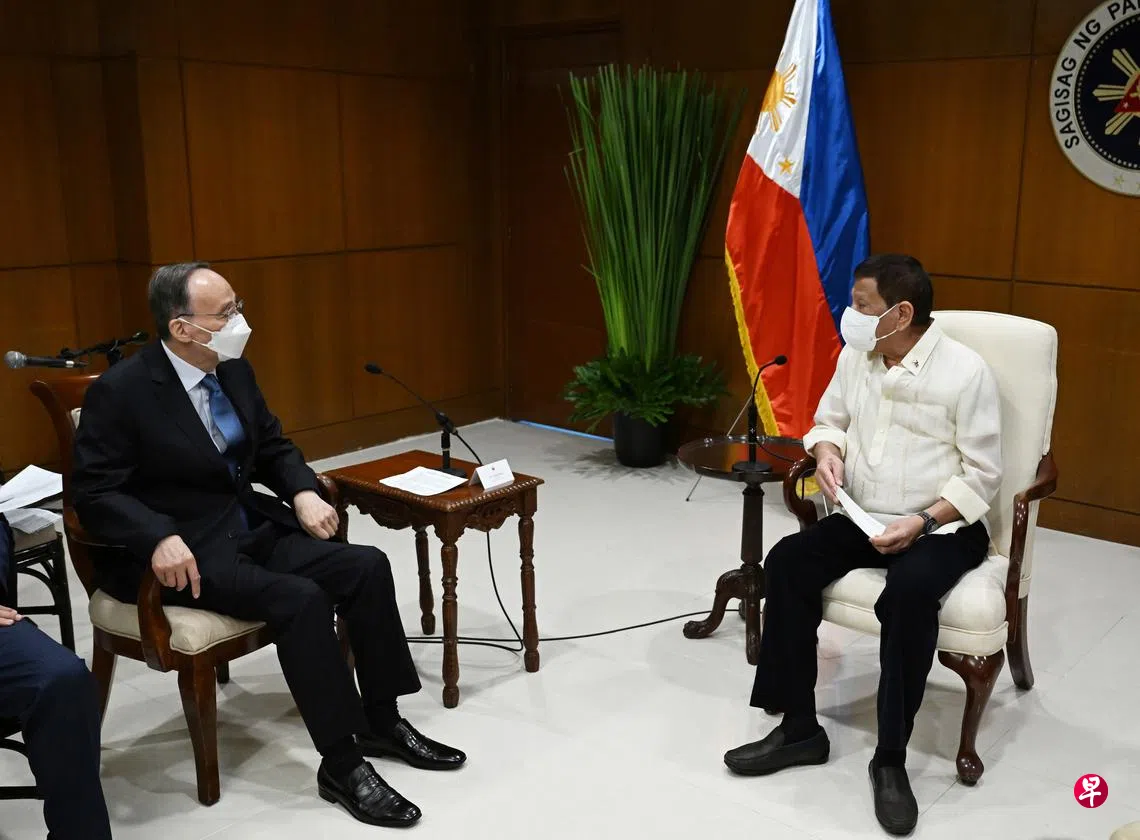中国国家副主席王岐山周三(6月29日)会见即将卸任的菲律宾总统杜特尔特时说,中菲从维护地区稳定大局出发,坚持通过对话协商妥善管控涉海分歧,确保两国关系朝正确航向破浪前行。