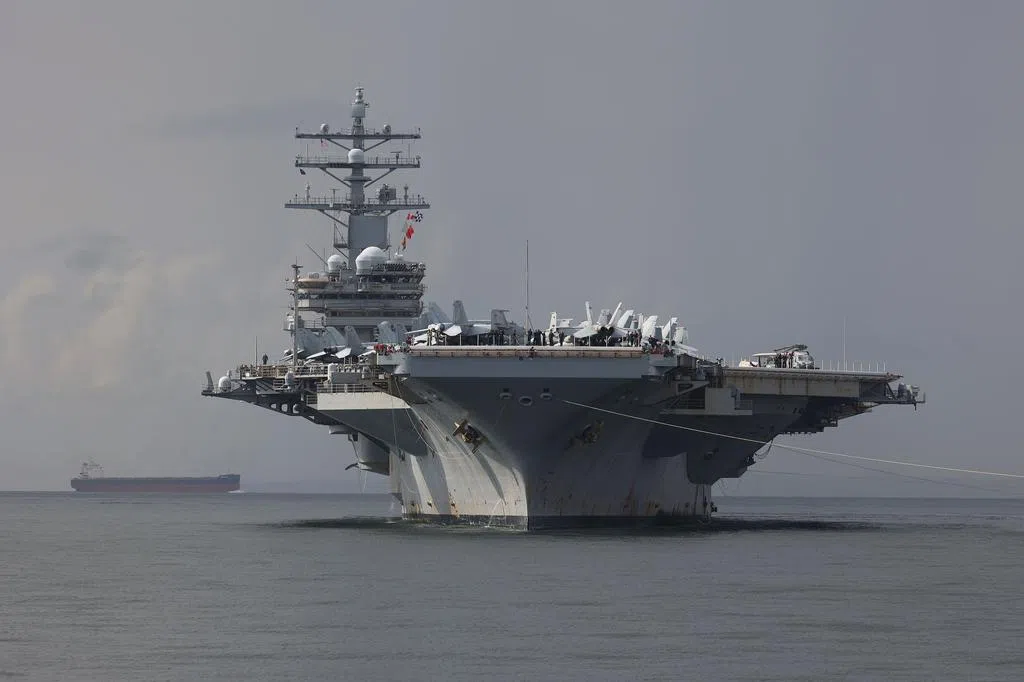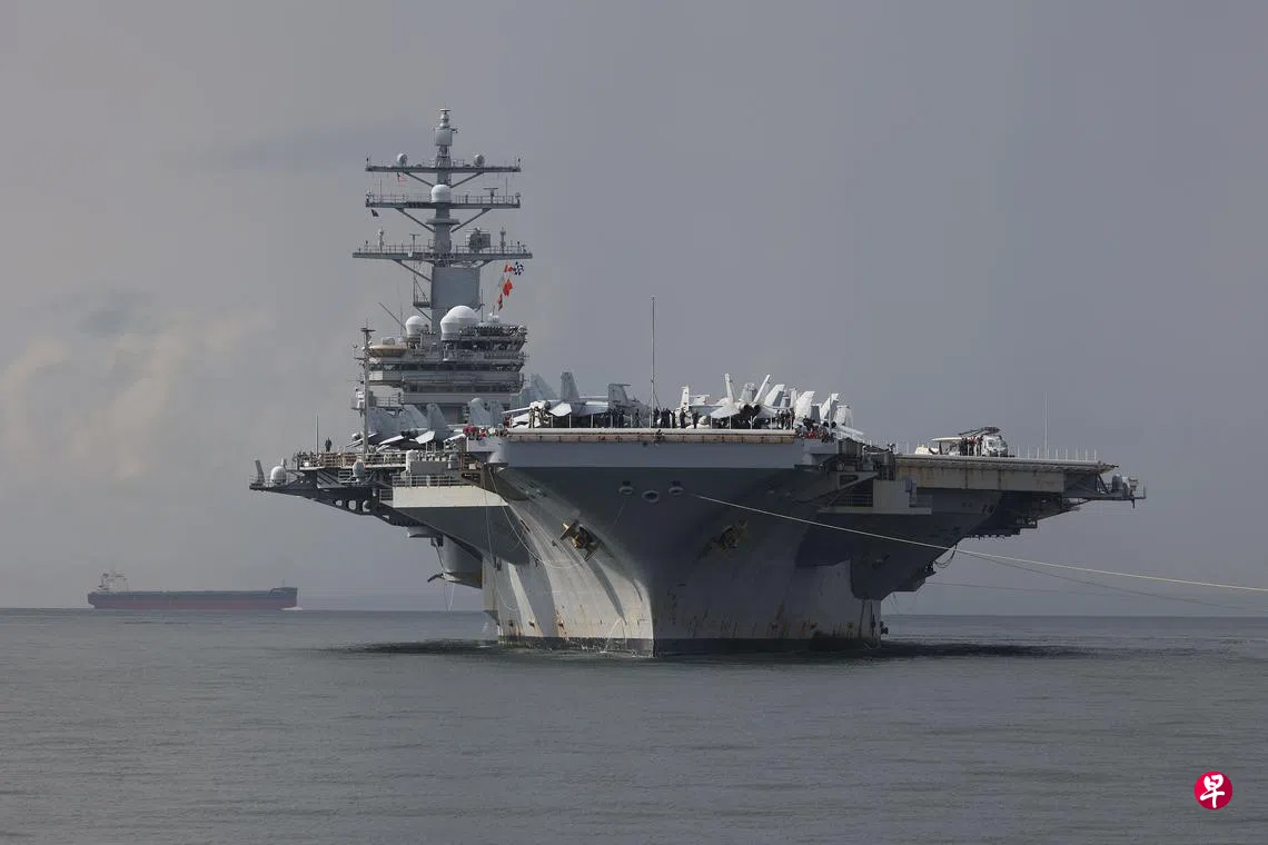 里根号上星期五(22日)抵达新加坡樟宜海军基地。这是冠病疫情暴发以来,美军航空母舰首次抵达新加坡访问。