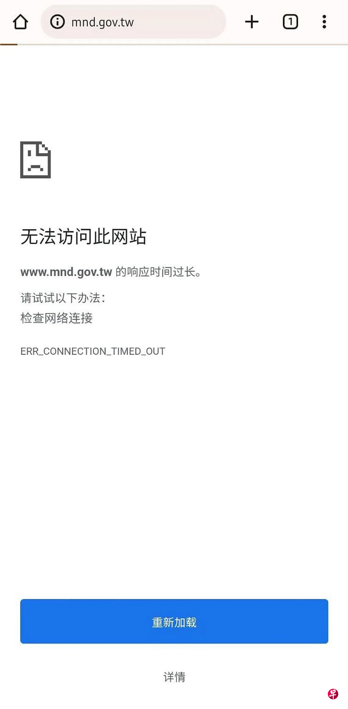 《联合早报》记者星期四早上10时尝试登陆上述两个网站,发现台湾外交部官网已恢复正常,但国防部官网仍无法登陆。