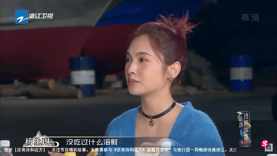 浙江卫视7月3日播出的《还有诗和远方》节目中,杨丞琳在品尝豆腐鱼时,被中国大陆作家麦家问道:“台湾人怎么没吃过豆腐鱼?”杨丞琳回应说:“其实我在台湾没吃过什么海鲜,早年家里的经济压力挺大的,其实吃海鲜是奢侈的在那儿。”