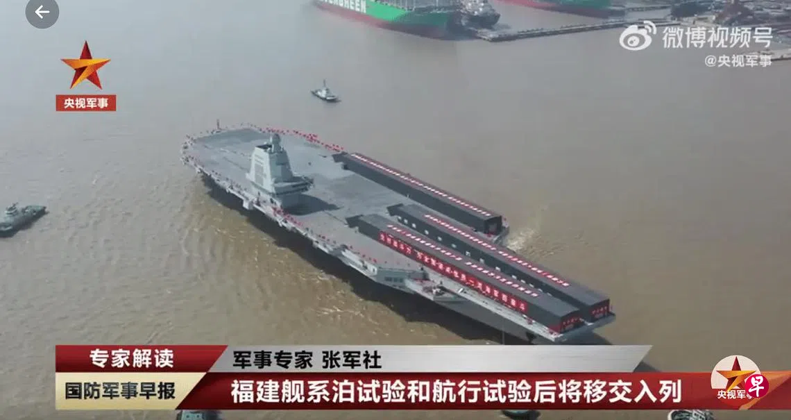 福建舰目前正按计划开展系泊试验。中国央视军事星期天(9月25日)播发视频援引军事专家观点,对福建舰何时入列、服役进行了分析。