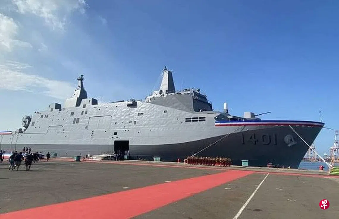 他说,台船公司对于能够承造海军新型两栖船坞运输舰深感荣幸,“玉山军舰”将成为台湾海军新型两栖作战舰艇最新战力,同时担负南中国海及外岛运输主力。