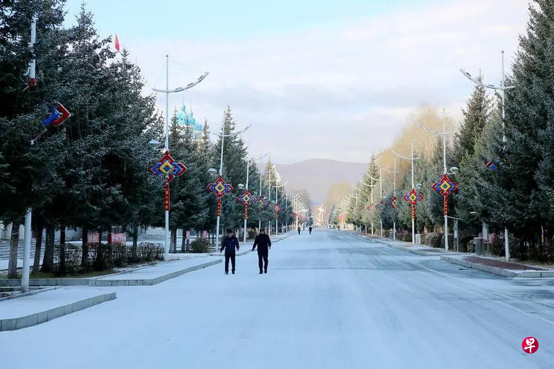 中国最冷小镇黑龙江省大兴安岭呼中区城区星期天(10月16日)迎来今冬首场降雪,比去年晚了15天。