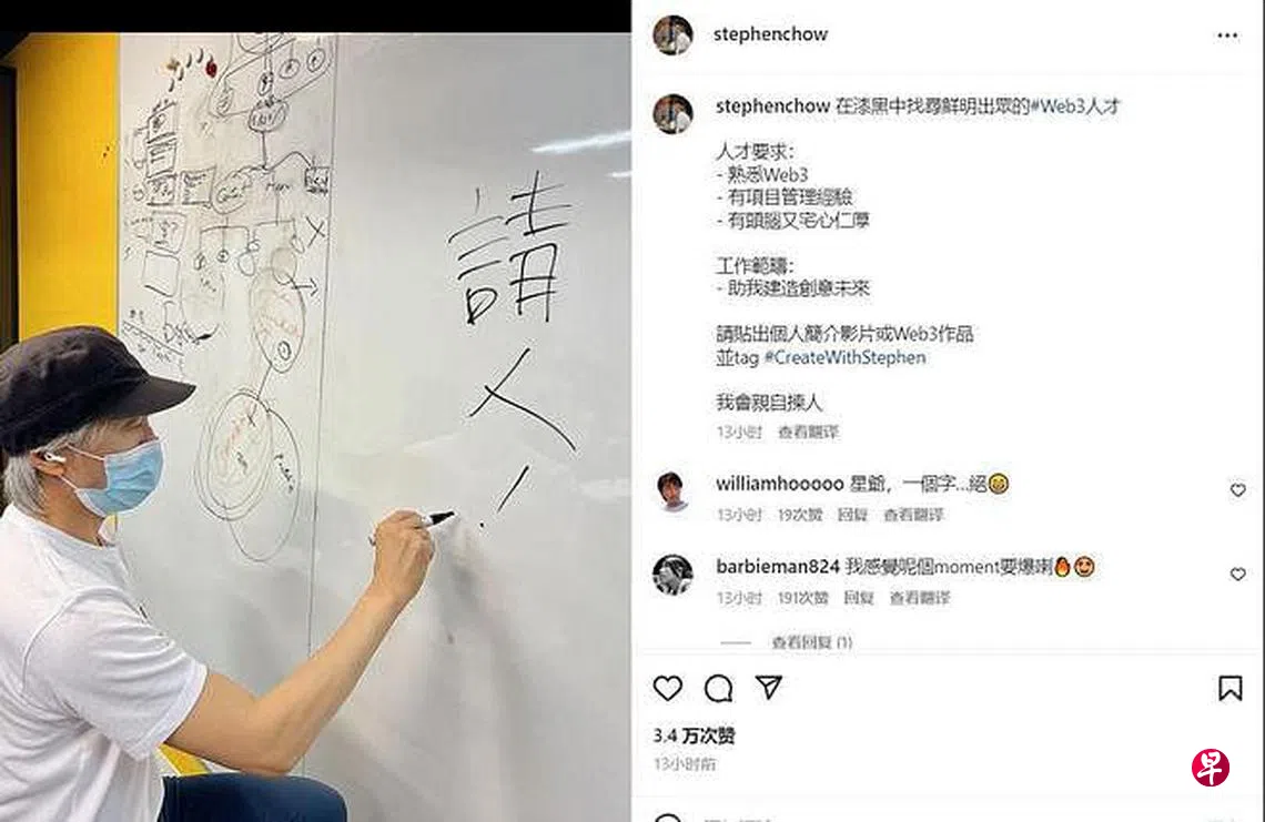 香港著名影星周星驰进军Web3,并在首度开通社交账号时,发文要招聘人才。