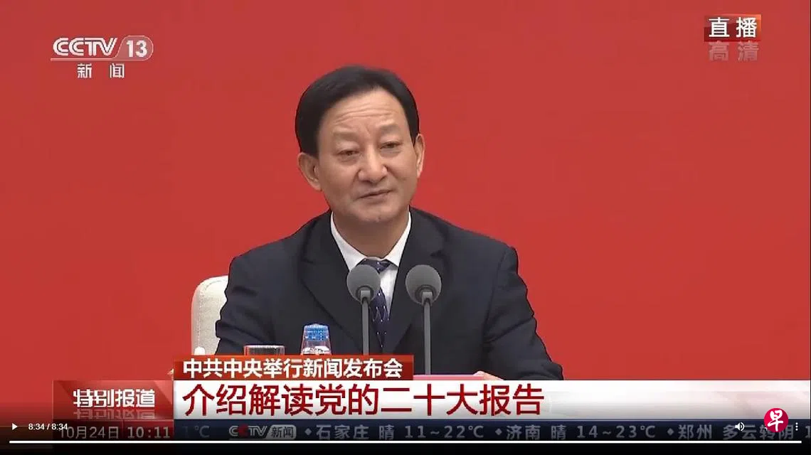 据澎湃新闻报道,中共中央星期一(10月24日)上午举行新闻发布会,介绍解读中共二十大报告。