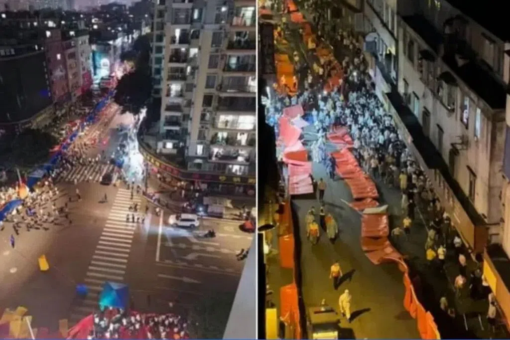 海珠区在11月5日开始实施临时管控防控措施,其中大部分区域此次已是第三次延长风控时间。此前13日宣布再延长封控后,网传视频显示,海珠区“城中村”数百民众星期一(14日)晚冲出封控区上街抗议,并一度与警方发生冲突。
