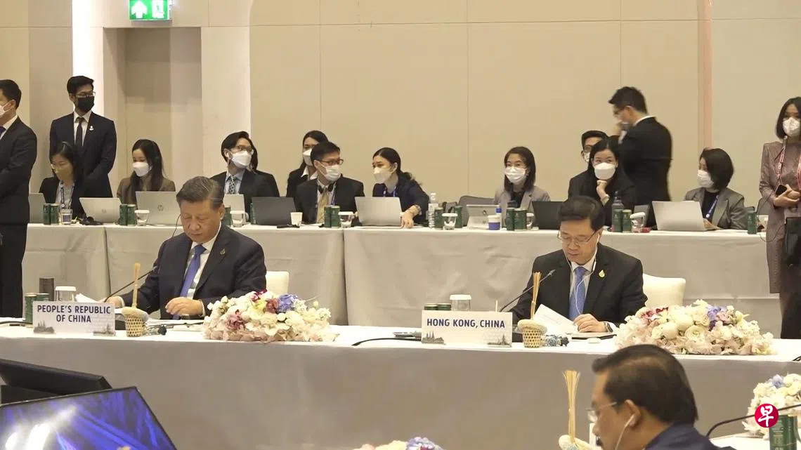 李家超上星期四(17日)到曼谷机场迎接习近平,峰会期间两人虽无私下正式会面,但在场内相邻而坐,会场内外不时有交流。19日峰会结束离场时,习近平轻拍特首李家超的手臂,并挽着他的手臂,一直交谈并行离场。19日下午,李家超也前往送机,被问到习近平是否对自己有具体嘱咐,他则未正面回应。