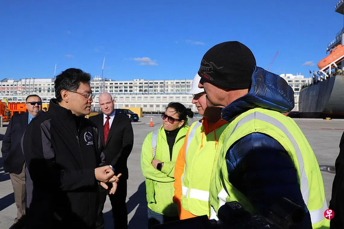 秦刚说,很高兴得知波士顿港与包括中国在内的世界各国开展广泛经贸合作,充分发挥自身区位优势和辐射效应,这对美国东北部经济繁荣意义重大。港口的兴衰与贸易息息相关,中美两国互为最重要的贸易伙伴,去年双边贸易额超过7500亿美元(约1万亿新元),为美创造了260万个就业机会。中美经贸合作事关美国普通民众的生活生计,不应该让政治因素影响老百姓过上更好生活。双方应持续推动中美经贸往来,助力两国经济发展,创造更多就业机会。