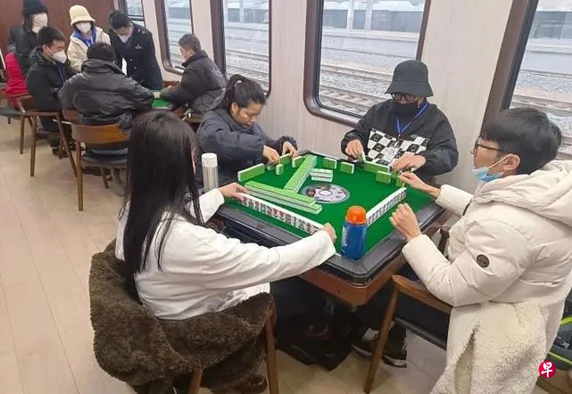 中国铁路西安局集团的“秦岭冰雪游”主题定制列车上设有麻将桌,相关视频在互联网上流传,引起中国网民的关注。
