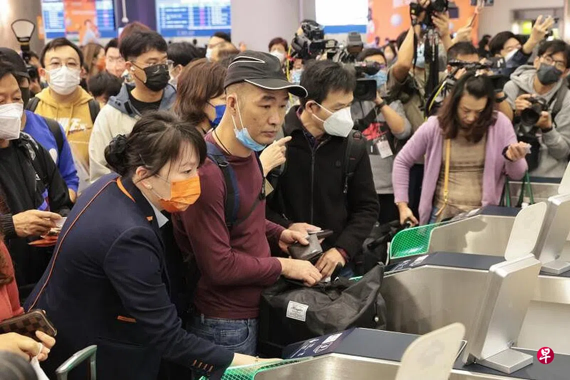 广深港高速铁路香港段因冠病疫情停驶三年后,星期天(1月15日)恢复运行服务,首趟从香港北上至深圳的列车出发前,便有乘客清晨一早便抵达车站。