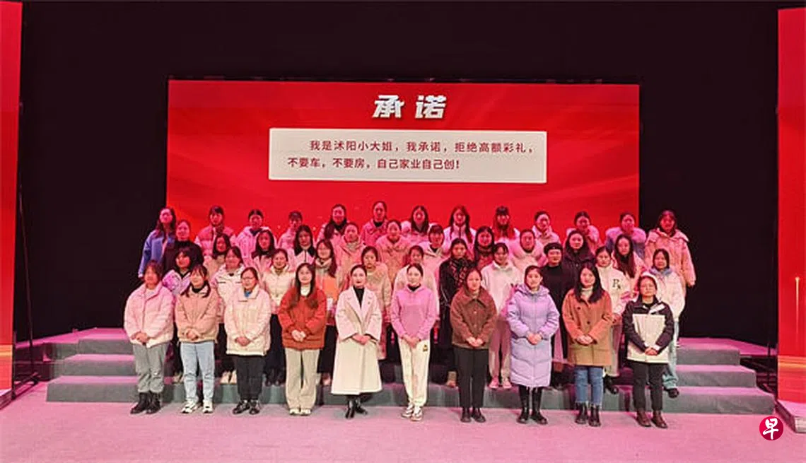 江苏省沭阳县上星期五(2月10日)举办了一场“沭阳小大姐”新时代文明婚恋倡导活动,倡议未婚女青年拒绝高价彩礼。