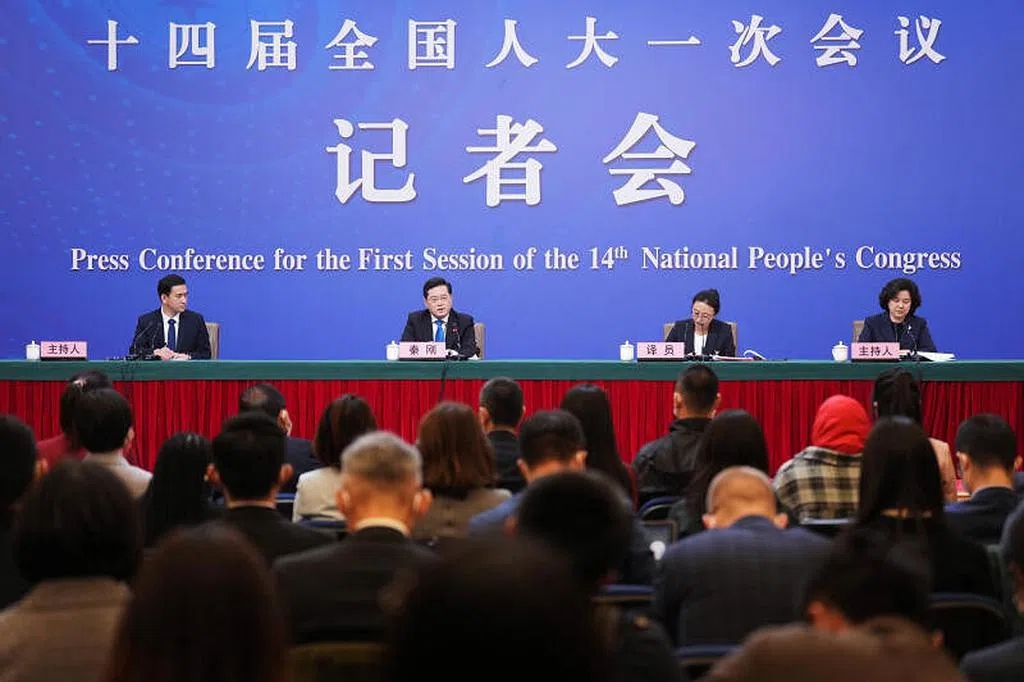 秦刚在记者会上就“中国外交政策和对外关系”相关问题回答中外记者提问。
