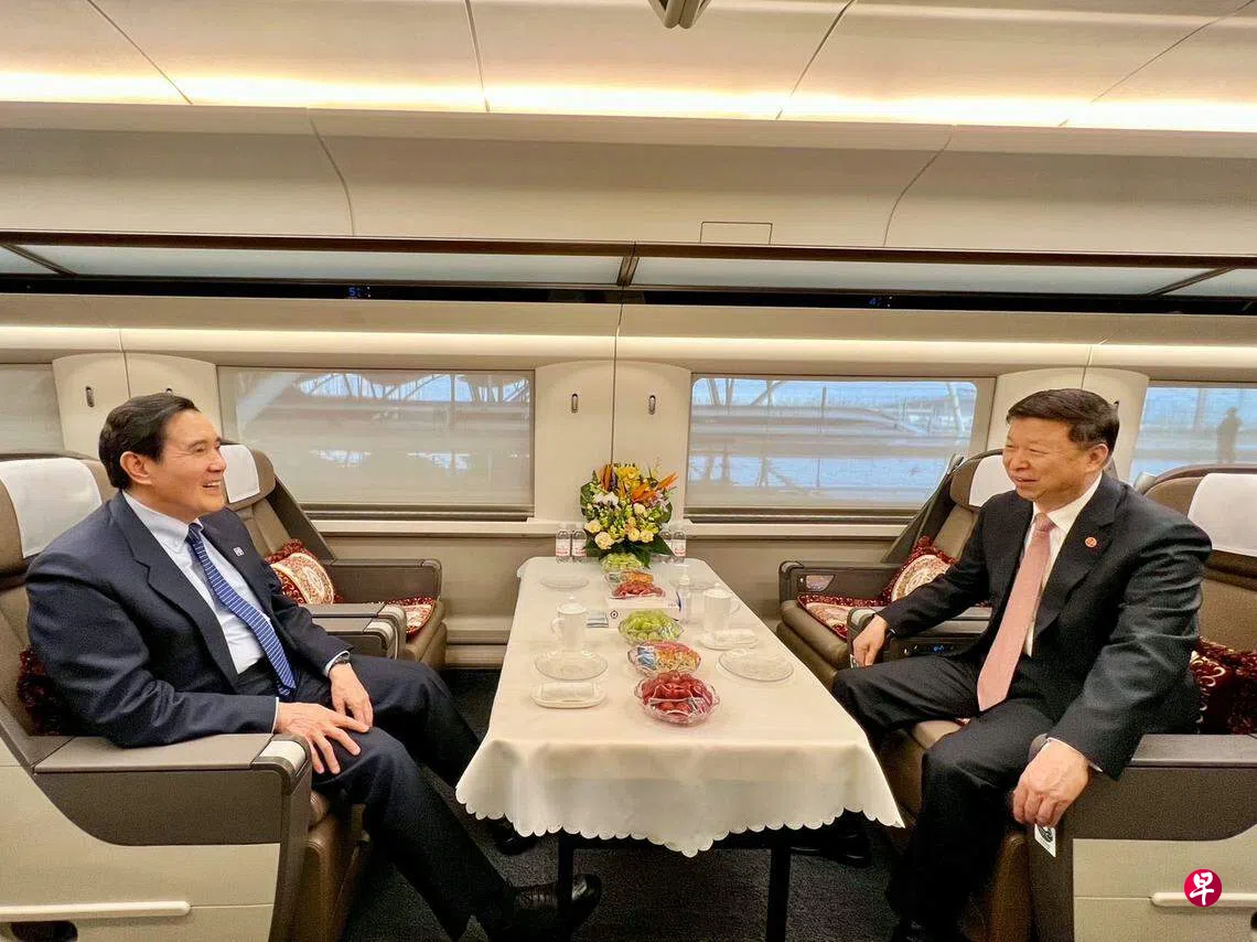 在中国大陆国台办主任宋涛的陪同下,台湾前总统马英九星期五(3月31日)下午从湖北武汉搭乘高铁前往湖南长沙。两人在列车上对坐交谈,一路谈笑风生。