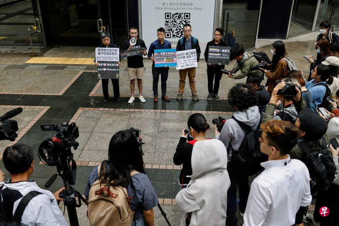 据路透社报道,示威者冒雨在香港入境事务处外举起标语牌,要求港府遵守法律判决,给予跨性别人士改变其身份证性别标记的权利,而无需进行全套变性手术。