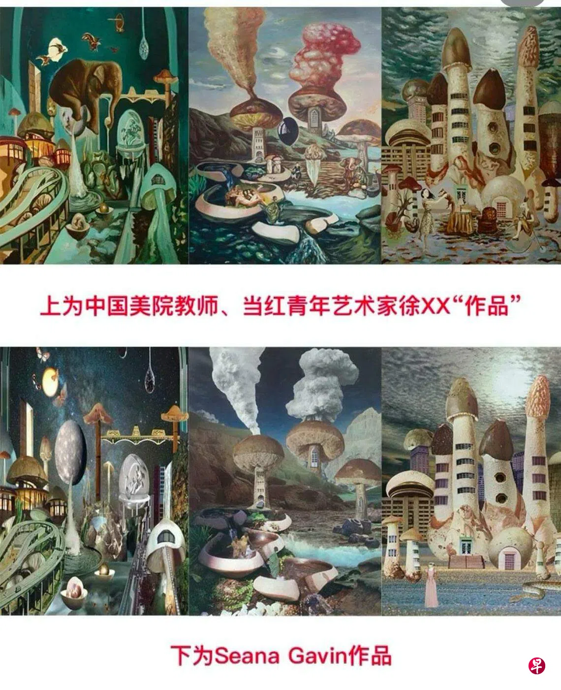 该账号分析称,徐跋骋的抄袭史可能超过10年,近期作品仍然直接、大量描摹英国艺术家盖文(Seana Gavin)等人。