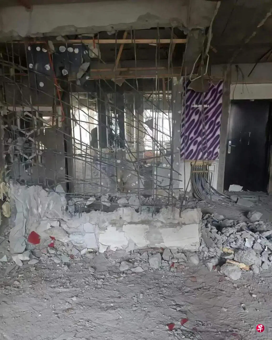 网传照片可见,正在装修的是三楼室内,多面墙体被拆除,其中有一面是承重墙,钢筋裸露在外。受影响的居民从4层到21层,有高层业主晒出自家墙体的开裂情况,照片显示,墙皮大块脱落,墙上的缝隙清晰可见。