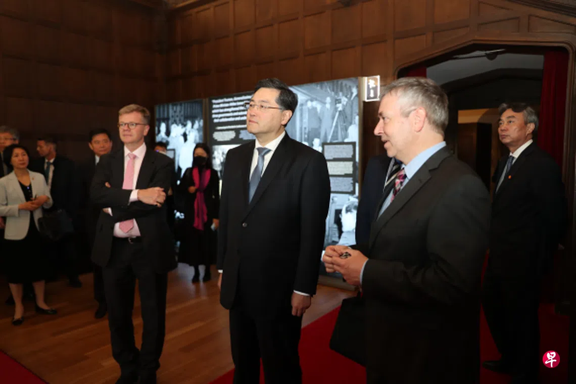 中国国务委员兼外长秦刚星期三(5月10日)在德国参观波茨坦会议旧址,并与德国总理朔尔茨会面。秦刚在参观波茨坦会议旧址时强调,二战后国际秩序必须得到维护,中国国家统一必须要实现。