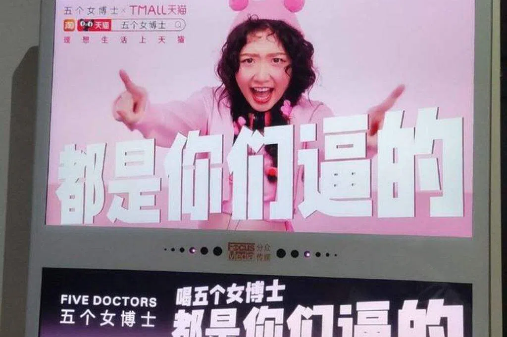 在“五个女博士”的视频广告中,几位女性面目狰狞,握拳嘶喊:“老公气我,喝!”“又老一岁,喝!”,被网民质疑侮辱女性。中国妇联主办的《中国妇女报》5月6日曾发文批评其哗众取宠、博取眼球。