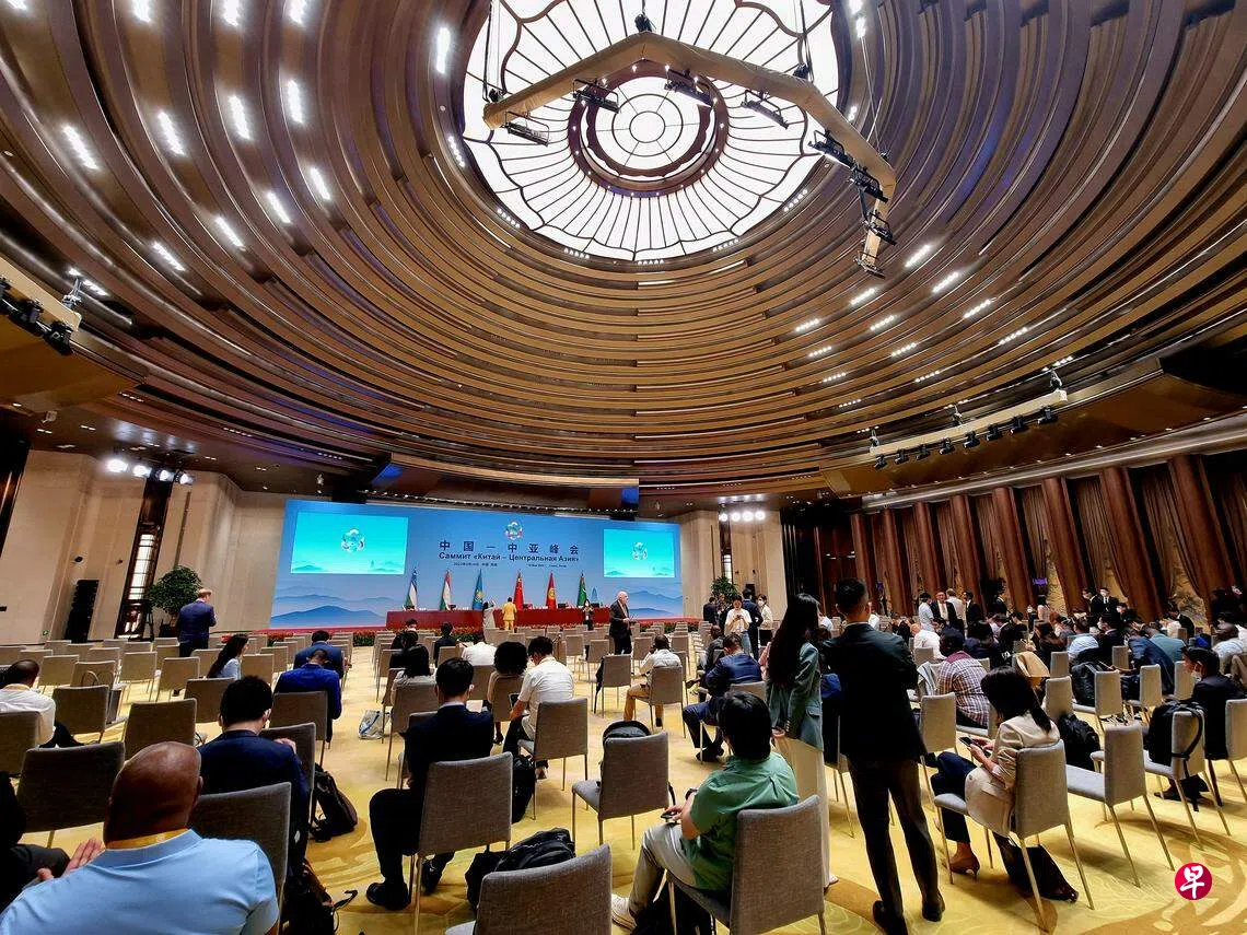 习近平上午将与中亚五国元首共见记者中国国家主席习近平星期五上午将与中亚五国元首在西安国际会议中心共见记者。目前与会记者已进场入座。 (王纬温摄)首届中国-中亚峰会星期四(5月18日)晚上在陕西省会西安拉开序幕。中国国家主席习近平星期五(19日)上午将与中亚五国元首在西安国际会议中心共见记者。目前与会记者已进场入座。这场记者会将不设提问环节。(联合早报记者王纬温西安报道) 中国国家主席习近平星期五上午将与中亚五国元首在西安国际会议中心共见记者。目前与会记者已进场入座。(王纬温摄) 延伸阅读 会中亚五国元首 习近平:在安全等核心利益上相互支持 习近平西安上一篇蒙大拿州五名TikTok用户起诉州禁令下一篇台政论名嘴郭正亮退出民进党购买此文章