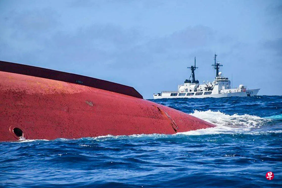 这艘名为“鲁蓬远渔028”的中国渔船上星期二(16日)凌晨在印度洋中部海域倾覆时,船上载有中国籍船员17人、印尼籍17人,菲律宾籍五人。中国海军舰船上星期四(5月18日)打捞起这两具遗体。