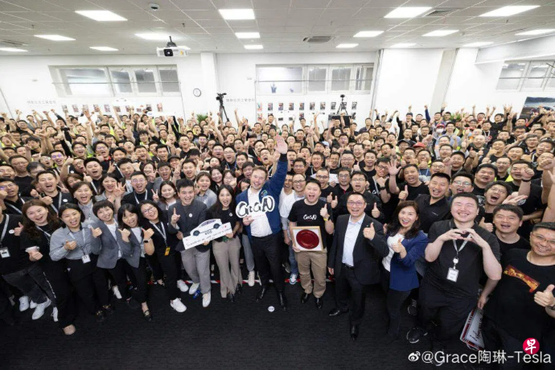 综合路透社和澎湃新闻报道,特斯拉全球副总裁陶琳星期四凌晨零时在微博上传两张马斯克和员工的大合影,配文“感谢所有的支持!收获满满的一天!”,地点是特斯拉上海超级工厂,意味着马斯克时隔三年再次到访这家电动汽车制造商最大的生产基地。