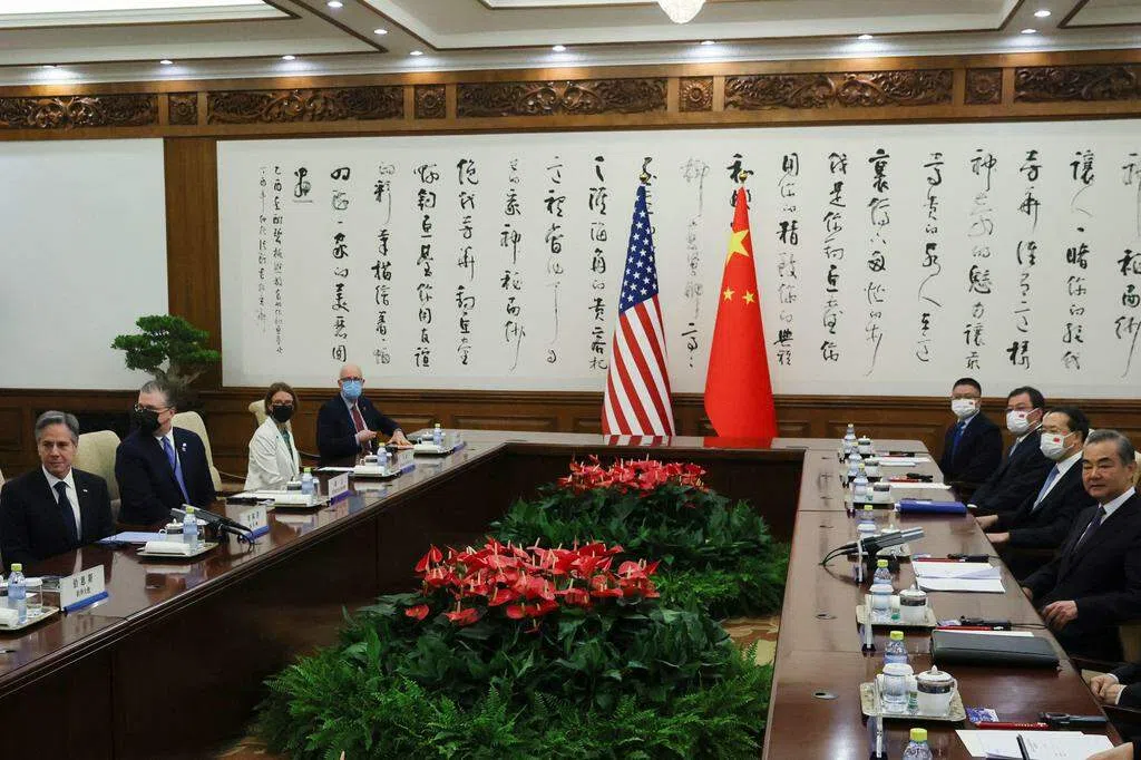 法新社引述一位美国国务院官员说,布林肯星期一与王毅在北京钓鱼台国宾馆举行了三个小时的会谈。