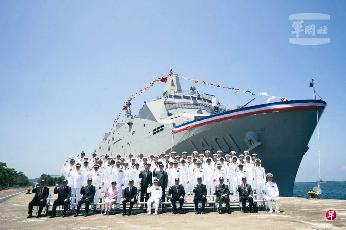 台湾海军首艘万吨级两栖运输舰“玉山舰”正式成军,将负责战备任务。