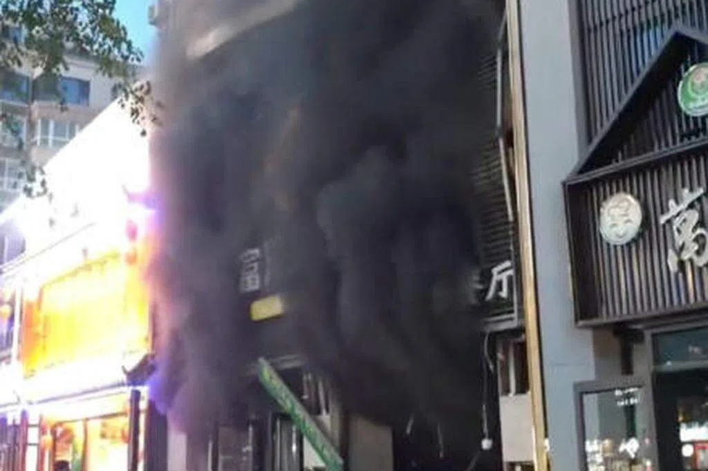 网传的现场视频显示,烧烤店被吞没在熊熊烈火之中,黑烟滚滚,餐厅前的马路上四处散落着玻璃残渣,现场一片狼藉。