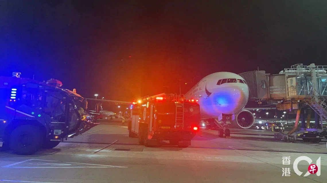 香港警方称,凌晨零时43分,接报指机场警区跑道南路一架客机因机件故障折返,期间一男10女年龄在29至77岁,从逃生滑梯离开飞机时意外受伤,受伤人员清醒,分别送北大屿山医院及玛嘉烈医院治理,案件列作“地面事故”处理。