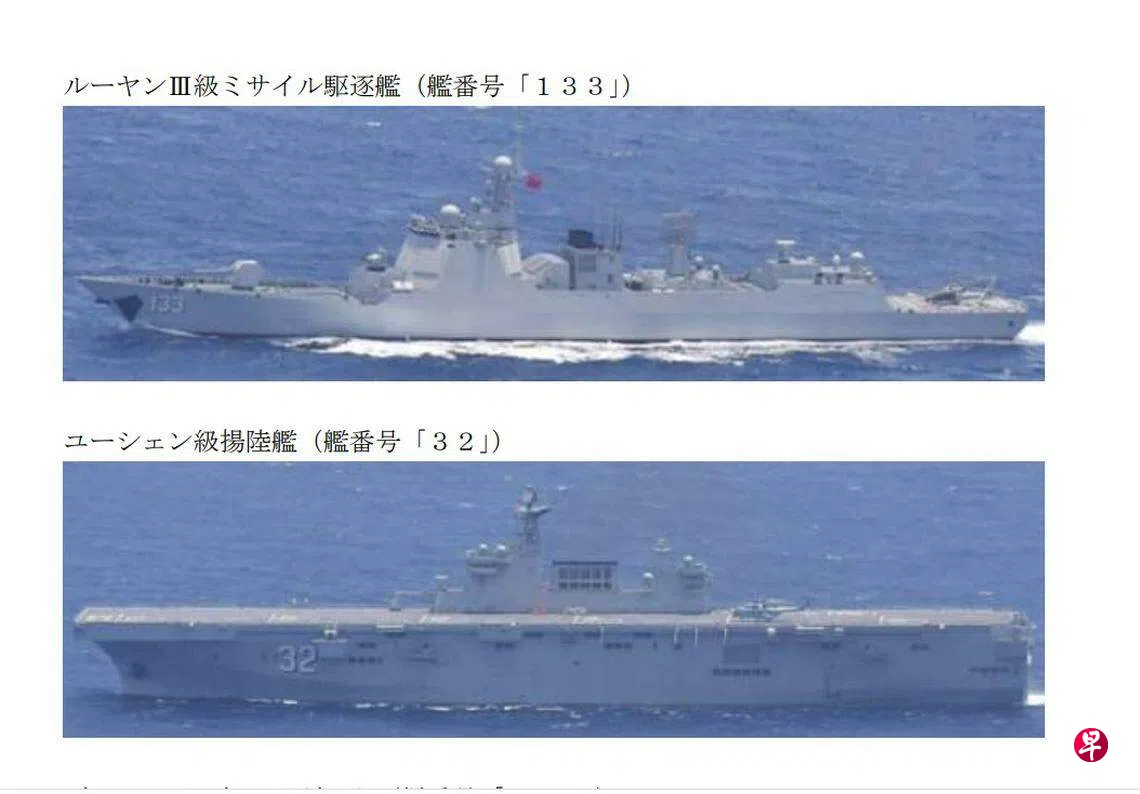 根据日本自卫队统合幕僚监部官网发布的通报,当地时间29日正午左右,日本海上自卫队在距鹿儿岛县草垣列岛西南约140公里的东海海域发现了正在向东北方航行的中国海军052D型导弹驱逐舰包头号(舷号133)和075型两栖攻击舰广西号(舷号32)。两舰随后穿越大隅海峡进入太平洋。