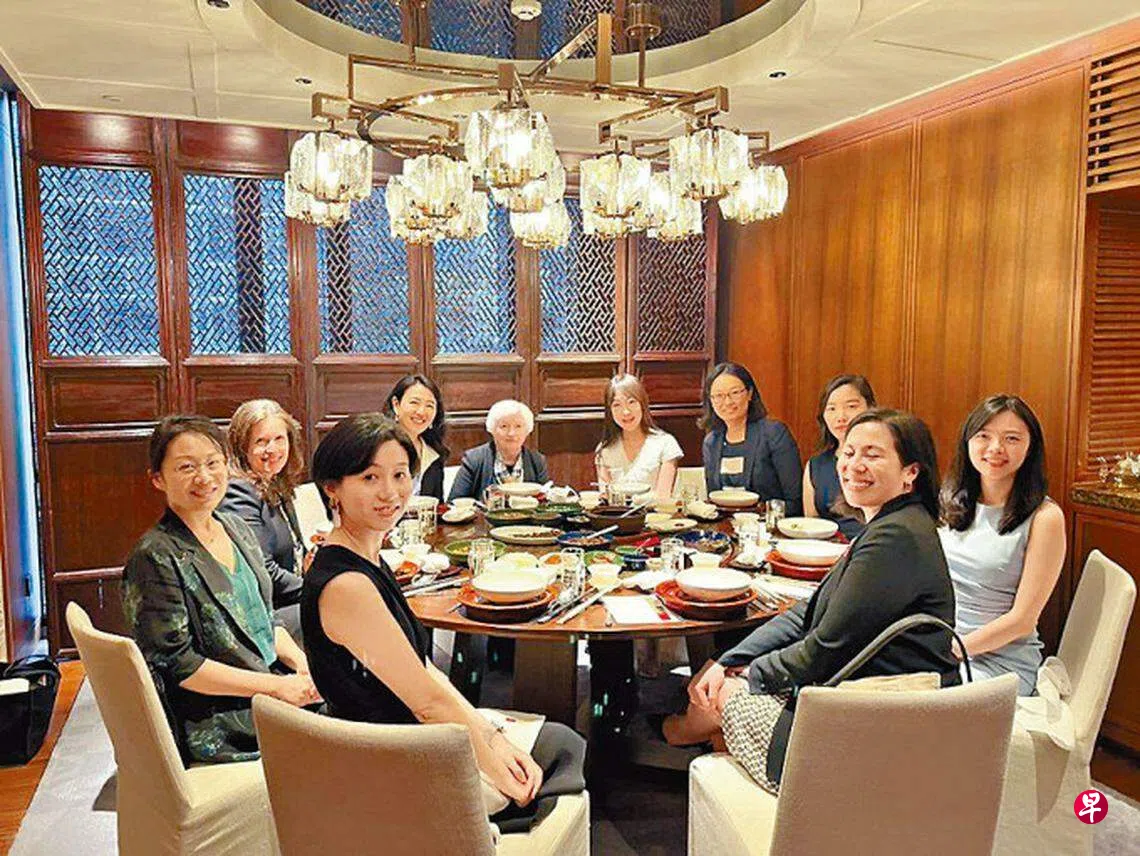 网传照片显示,她们在餐桌上合了影,除了坐在主位的耶伦,其余在座人士包括《经济学人》集团中国区总裁刘倩、清华大学经济学博士郝景芳等。