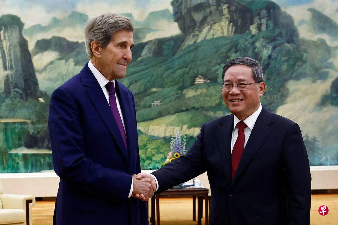 综合路透社和彭博社报道,李强星期二在北京人民大会堂与克里会面。克里在会谈开始时说,美中在两年前已同意帮助世界各国加速新能源转型,不再盲目使用煤炭发电,停止砍伐森林并遏制甲烷排放。