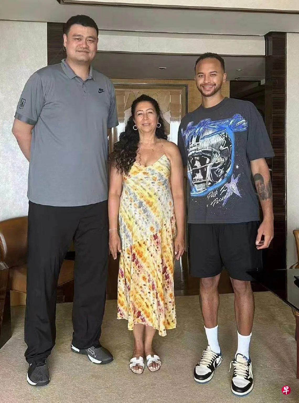 中国篮协也附上了篮协主席姚明、李凯尔及其母亲的合影。