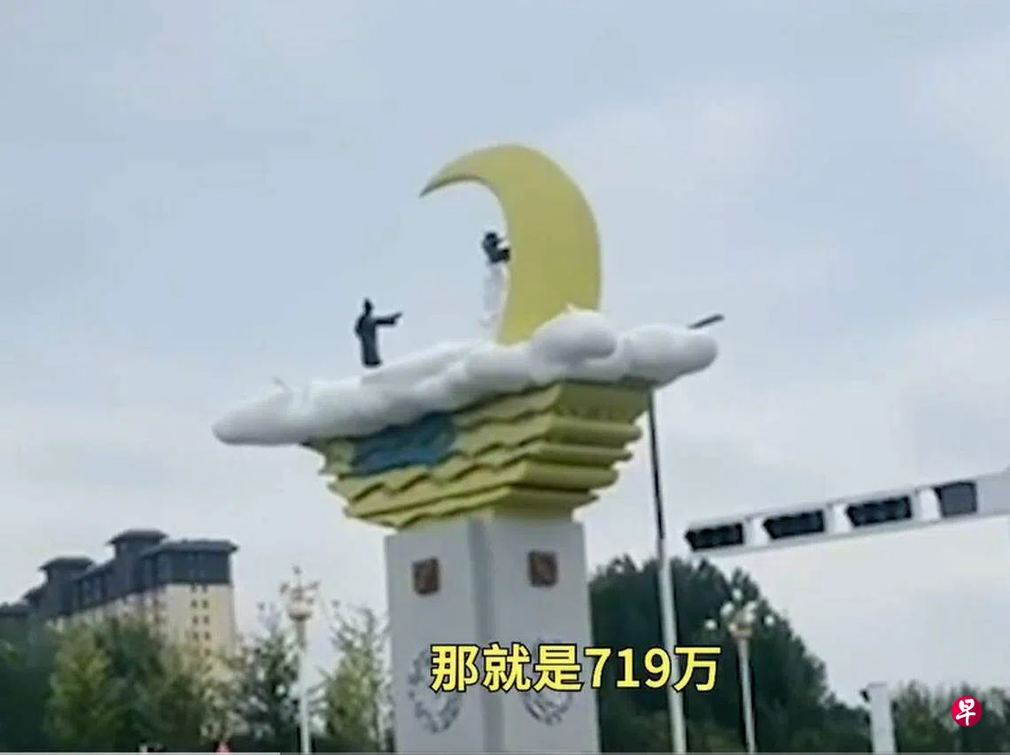 中国河南一个脱贫县花了超过700万元(人民币,约130万新元)建造一座牛郎织女地标雕塑,被网民吐槽“又丑又贵”。