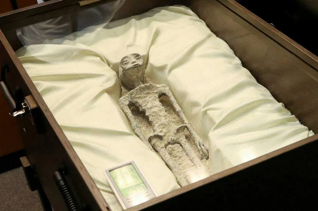墨西哥参议院于当地时间星期二(9月12日)就可能存在的外星生命一事召开听证会,会议展示了两具头部萎缩的干尸。