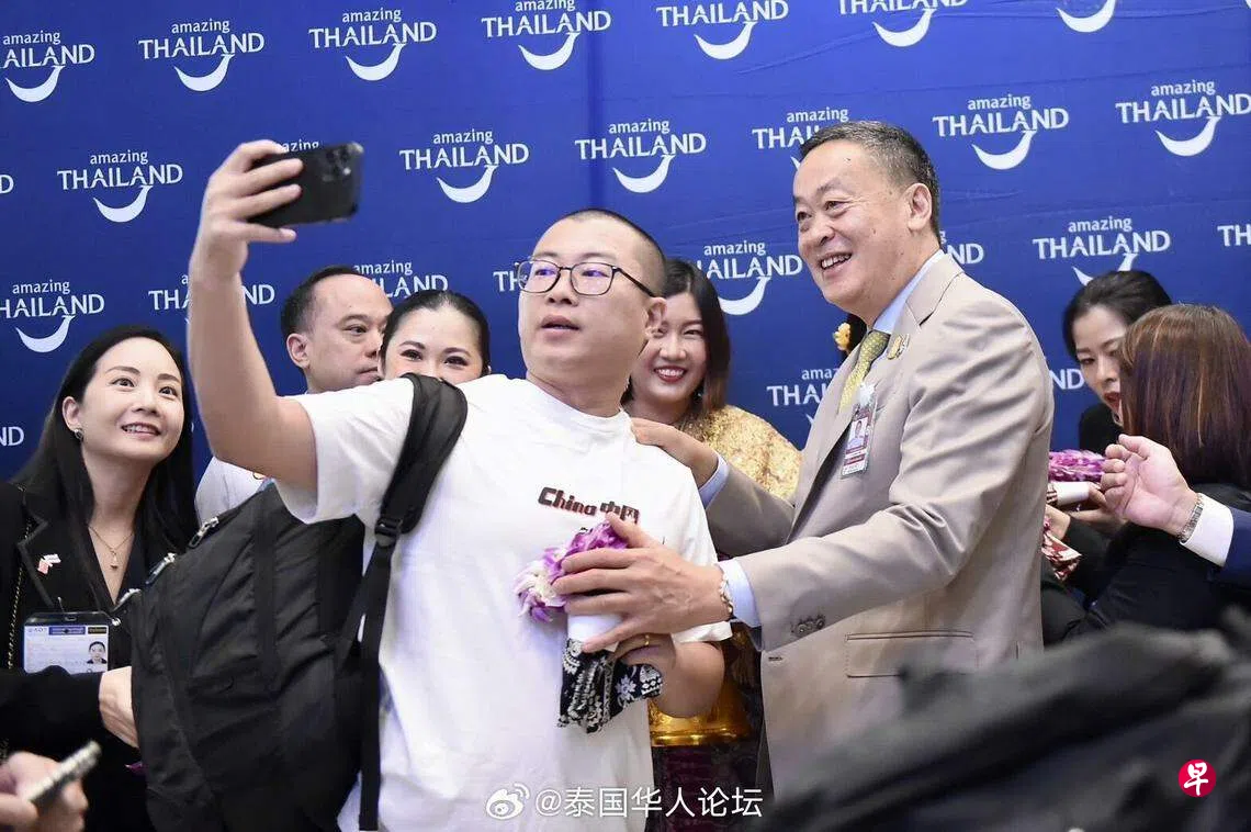 综合路透社和中国央视新闻报道,泰国首相社德他与多位部长星期一(9月25日)亲赴机场,迎接免签政策实施首日的第一批赴泰中国游客。该批中国游客乘坐泰国亚洲航空航班从上海起飞,于当地时间10时10分飞抵曼谷。