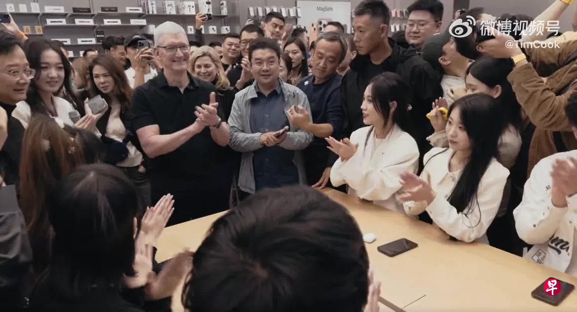 综合彭博社和红星新闻报道,库克星期一(10月16日)到访苹果位于成都太古里的旗舰店,向店里的消费者和员工挥手致意,并发表了简短讲话。