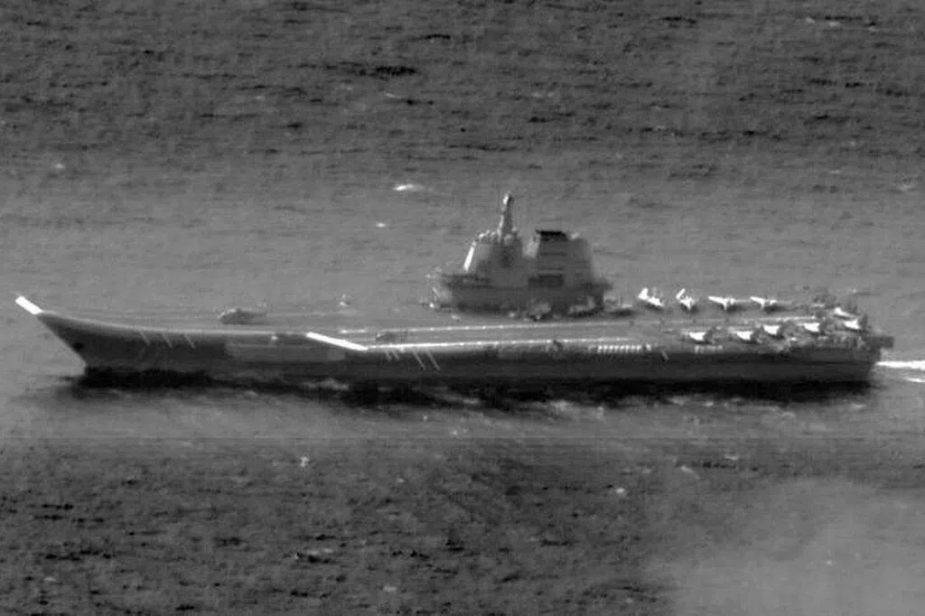 台湾国防部星期四晚上通报,大陆山东号航空母舰编队群当天穿越巴士海峡进入西太平洋,并披露了山东舰的黑白航拍照片。