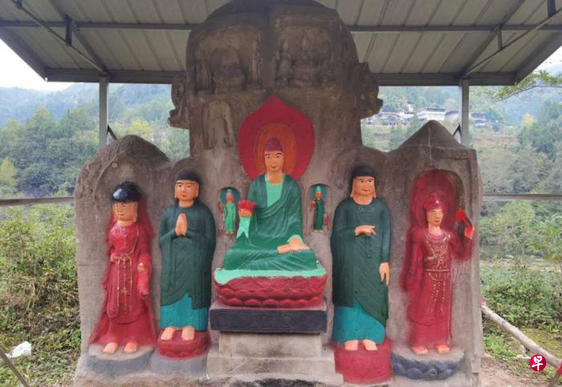 中国四川省巴中市南江县一个开凿于北魏晚期、距今1400多年的摩崖佛像,被当地村民以“穿衣还愿”为由用颜料涂抹“毁容”。当地公安机关正在调查此事。