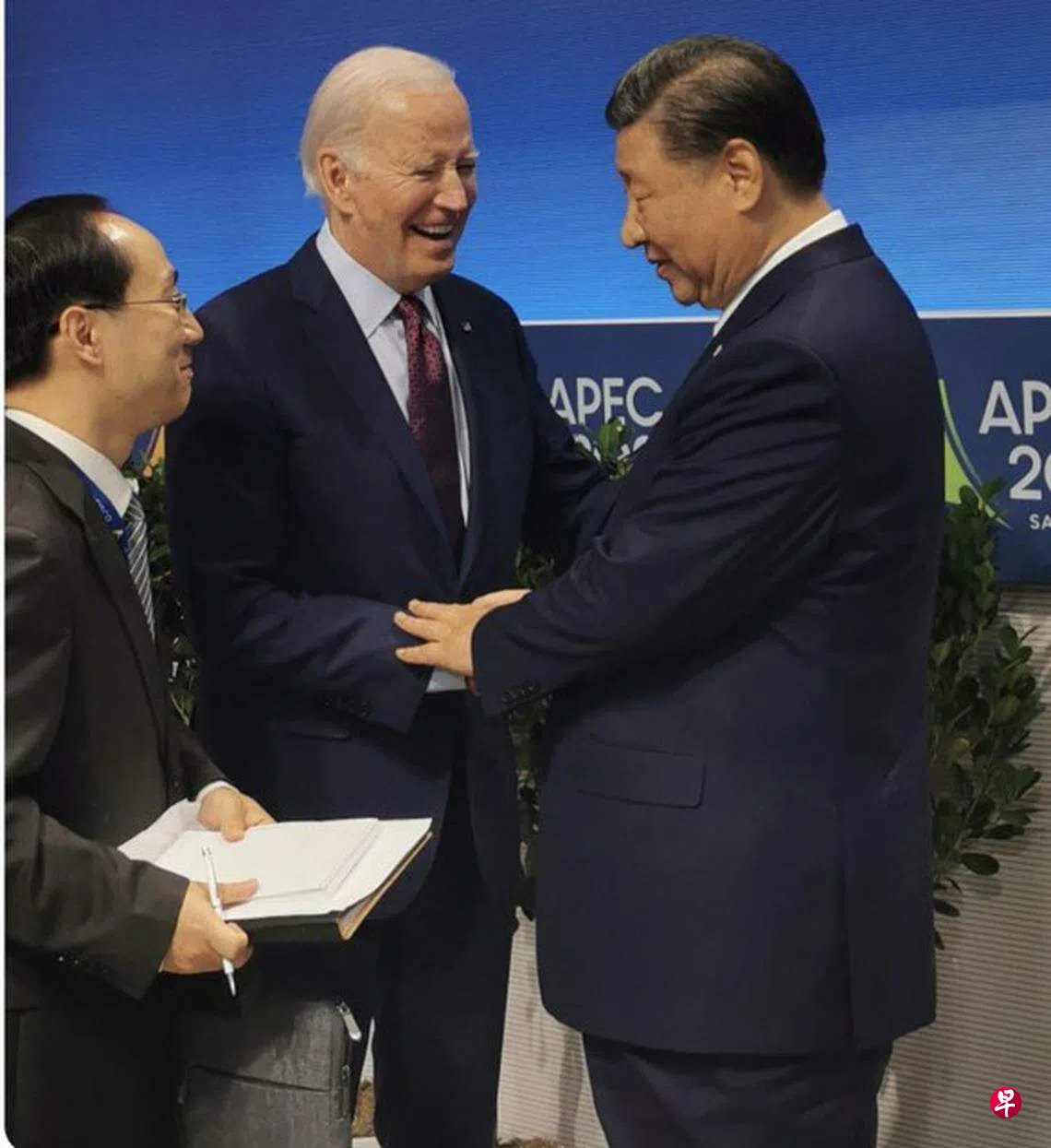 本届亚太经济合作组织(APEC)峰会期间举行的中美元首峰会当地时间星期三(15日)落幕后,美国总统拜登与中国国家主席习近平星期五在APEC领导人非正式会议结束时,再度互动,相互话别。