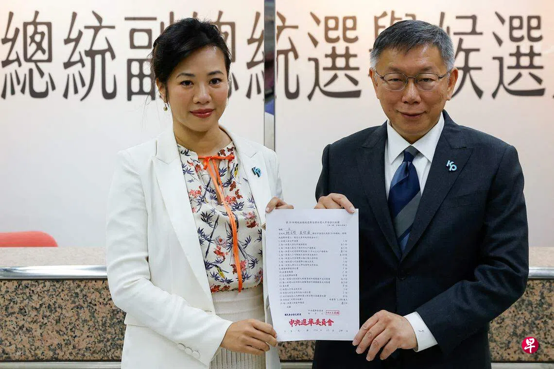 柯文哲在发表简短讲话后,与副手吴欣盈正式登记为正副总统候选人。