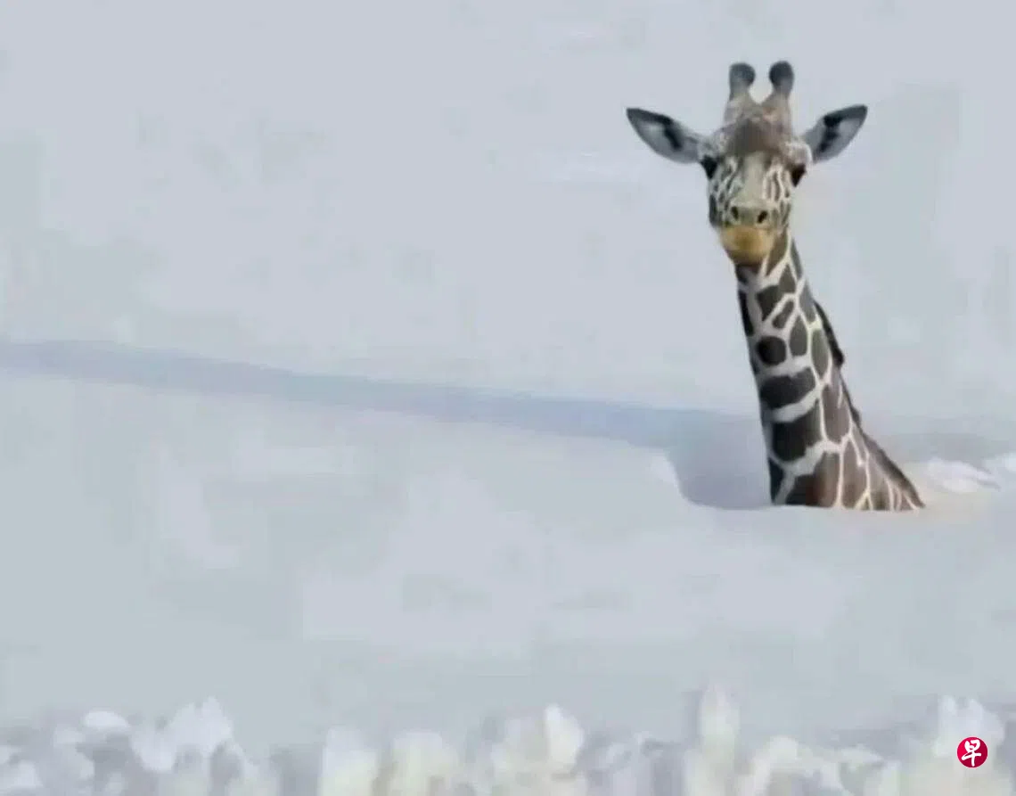 中国山东威海、烟台等地近日频繁遭遇强降雪,积雪深度打破当地纪录。有网民星期四(12月21日)发帖说,“别问烟台雪多大,动物园里就剩下它”,并配上一只长颈鹿在厚厚积雪中露出头的照片,让不少网民担心动物园其它动物的安危。烟台动物园星期五(12月22日)回应称,长颈鹿早就躲在暖气房中,不用担心。