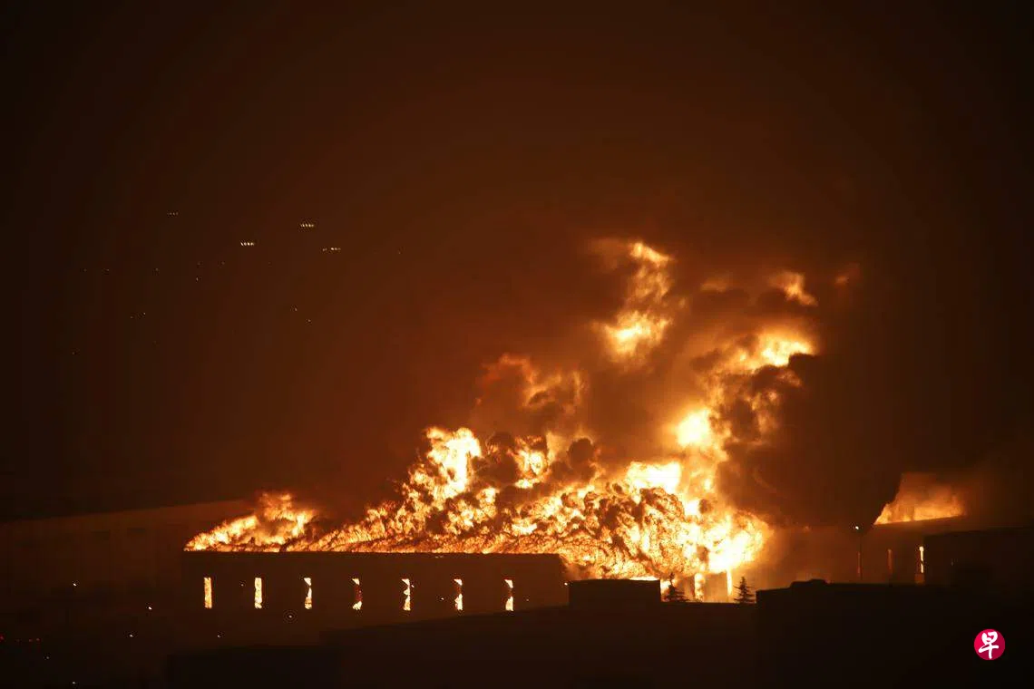 中国山东省青岛市一个保税仓库星期六(12月30日)起火,所幸无人员伤亡。