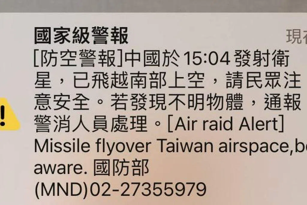台湾国防部星期二发布“国家级”防空警报,称中国大陆在下午3时4分发射卫星,飞越台湾南部上空。但警报英文版本中的“Missile(导弹)”一词引起民众恐慌。