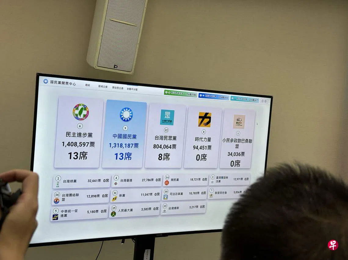 国民党开票中心统计:蓝绿不分区立委席次持平国民党开票中心的统计显示,国民党和民进党能分别拿下13席不分区立委。 (庄慧良摄)根据国民党开票中心的统计,国民党和民进党能分别拿下13席不分区立委,而民众党则拿下八席。目前台湾立委共113席,包含区域立委73席、不分区及侨居国外国民立委(简称不分区立委)34席,以及山地及平地原住民立委各三席、共六席。 2024年台湾总统选举上一篇国民党徐巧芯、王鸿薇自行宣布当选台北市立委下一篇民进党黄捷自行宣布当选高雄立委购买此文章