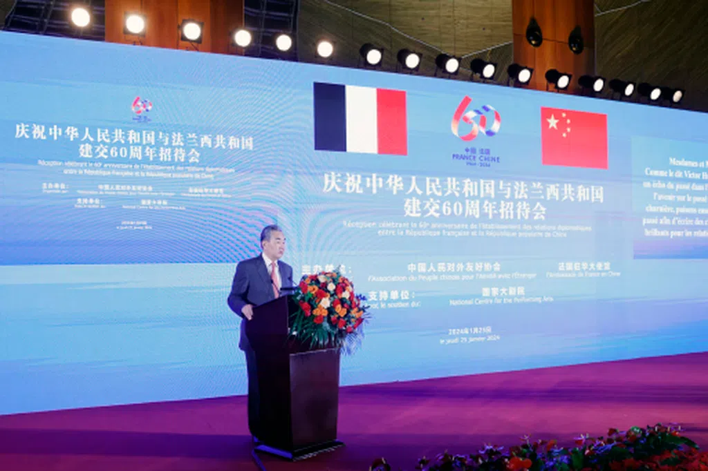 中共中央政治局委员、外交部长王毅星期四出席庆祝中法建交60周年招待会时说,中法两国没有地缘政治矛盾,没有根本利害冲突,有的是独立自主、敢为人先的精神共鸣。在推动平等有序世界多极化、普惠包容经济全球化上,中法具有高度战略契合和广泛共同利益。