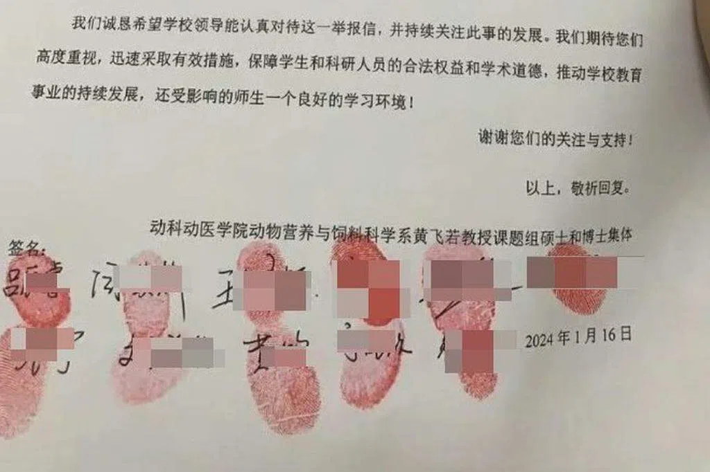 华中农大星期二发布的通报称:“对黄某某严重学术不端等行为及由此造成的恶劣社会影响,学校十分痛心,深表歉意。学校将举一反三,深刻检视,查堵漏洞,改进工作,坚定维护健康学术生态和良好育人环境”。