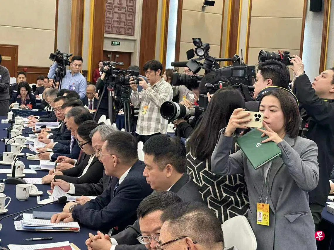 有记者在视频中说,这是他报道中国两会十几年,首次被邀请进入代表团区域。