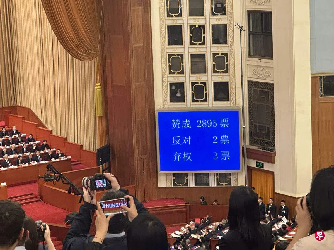 中国全国人大通过政府工作报告中国全国人大会议星期一(3月11日)举行闭幕会,大会2895票赞成、2票反对、3票弃权,表决通过政府工作报告。(杨丹旭摄)中国全国人大会议星期一(3月11日)在人民大会堂举行闭幕会。大会2895票赞成、2票反对、3票弃权,表决通过中国总理李强3月5日所做的政府工作报告。 2024中国两会上一篇中国全国人大举行闭幕会 2883票通过修改国务院组织法下一篇中国全国人大通过两高报告 分别有44票和27票反对购买此文章